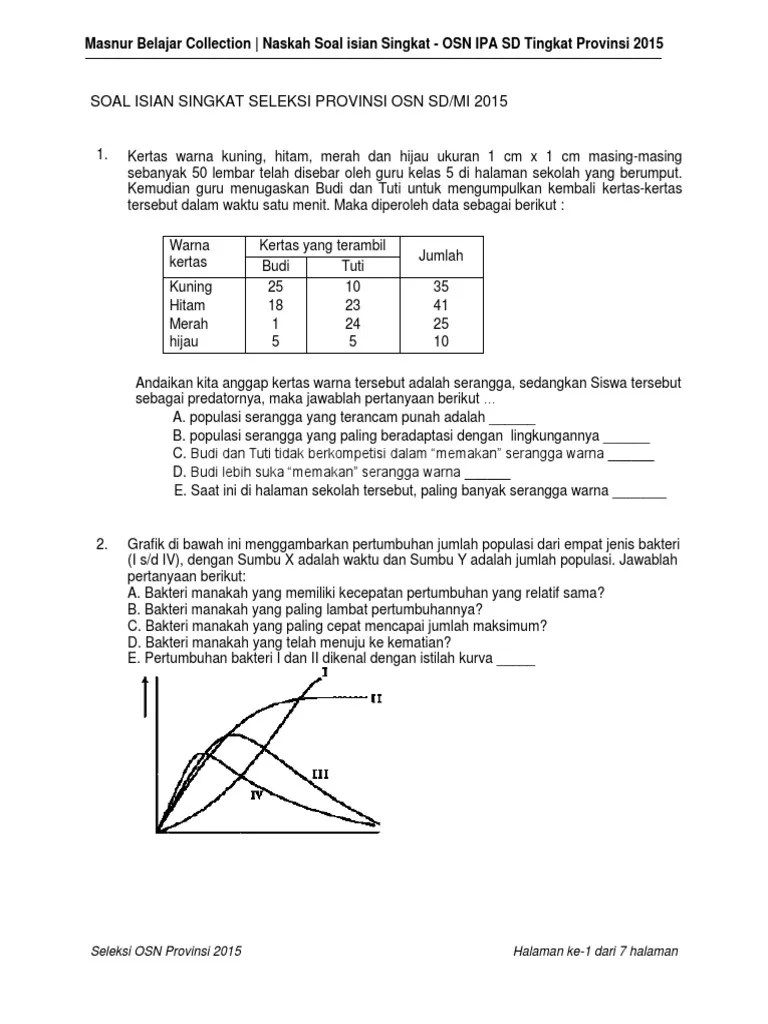 Jumlah soal seleksi ksn ipa sd jika berpedoman pada osn tingkat provinsi ini ada 40 soal pilihan ganda dan 10 soal isian singkat.